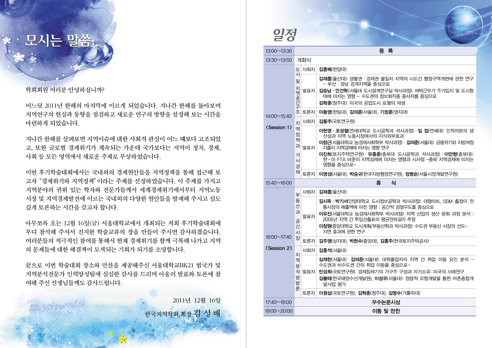 2011년 한국지역학회 후기학술대회