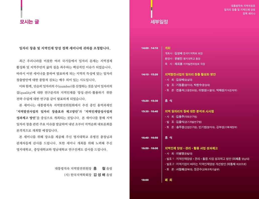 <일자리 창출 및 지역인재 양성 정책세미나>