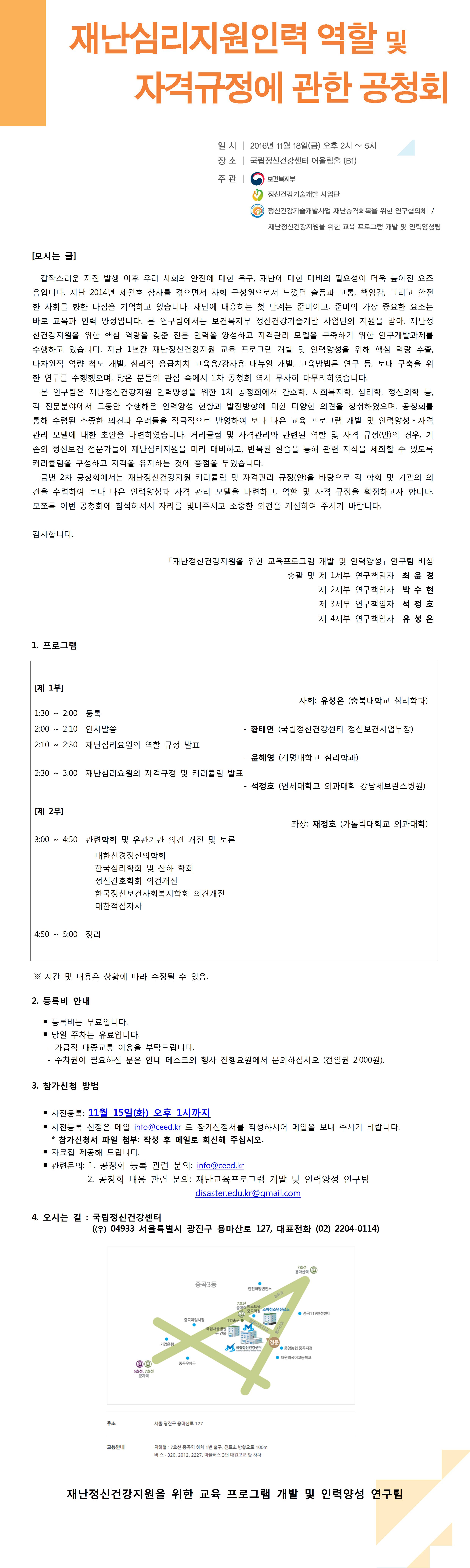 재난심리지원인력 역할 및 자격규정에 관한 공청회 안내