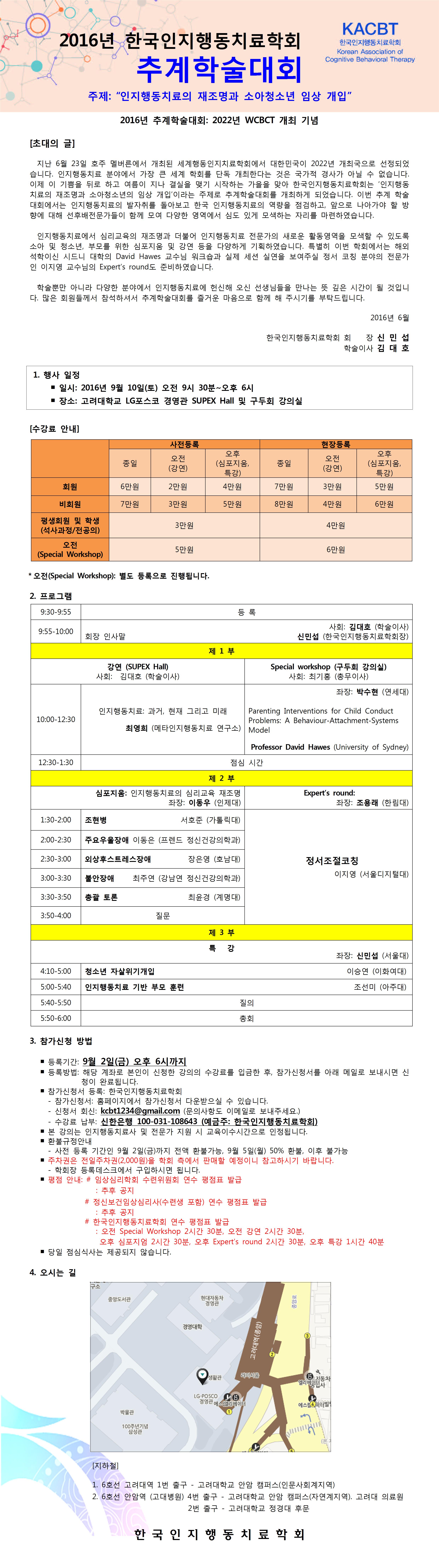 [한국인지행동치료학회] 2016년 추계 학술대회 안내