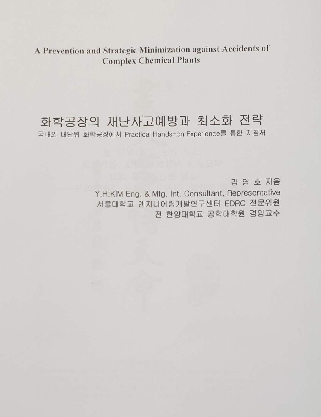 1) 신간저서명: 화학공장의 재난사고예방과 최소화 전략
