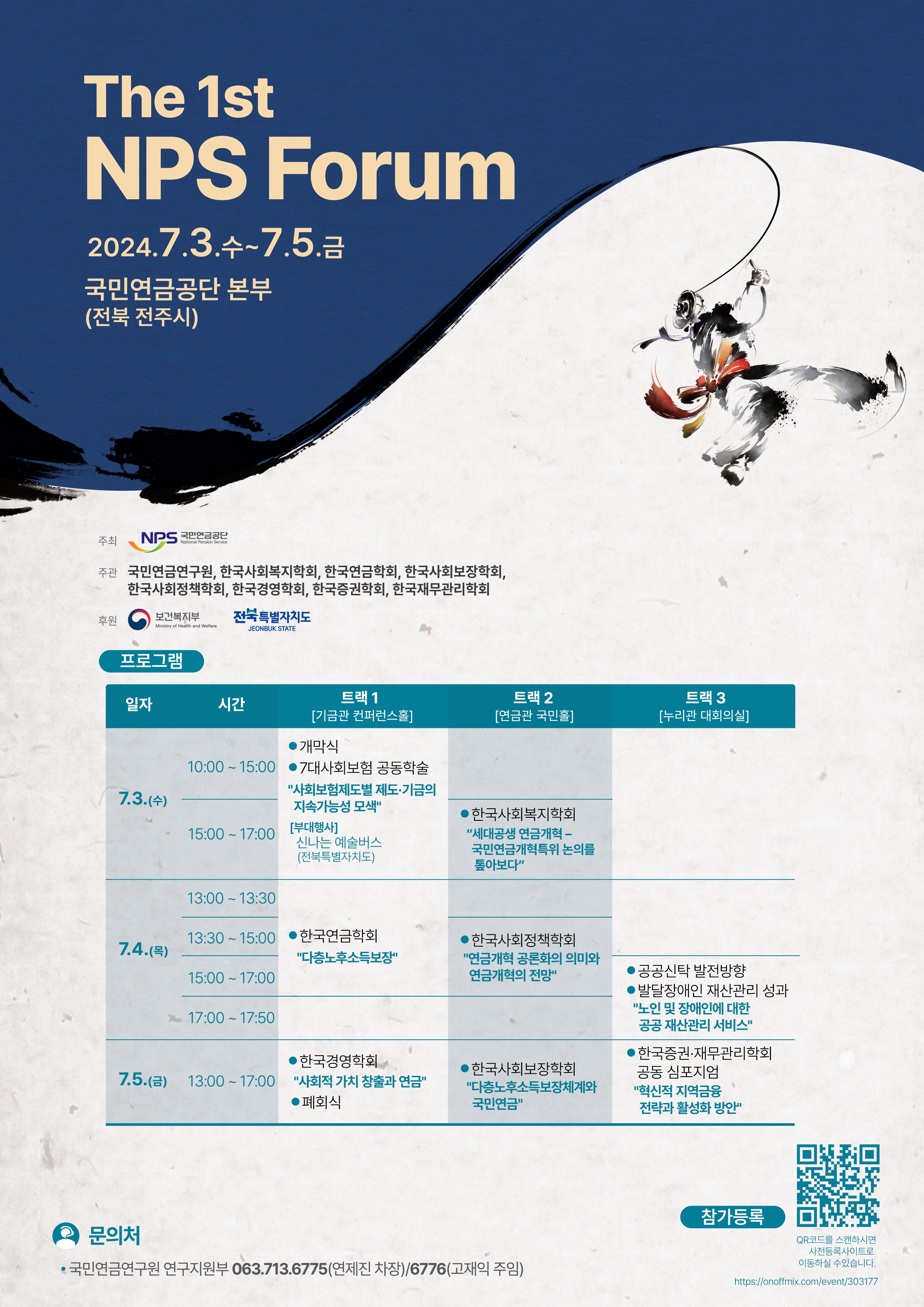 한국사회복지학회 세션은 "세대 공생 연금개혁, 국회연금개혁특위 논의를 톺아보다: 언론인이 묻고 학자가 답하다"을 주제로 2024년 7월 3일(수) 15:00 ~ 17:00, 국민연금공단 본부 국민홀에서 진행됩니다.