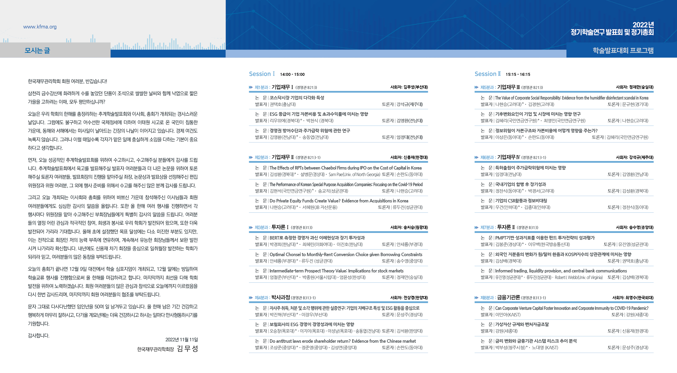 한국재무관리학회 회원 여러분!