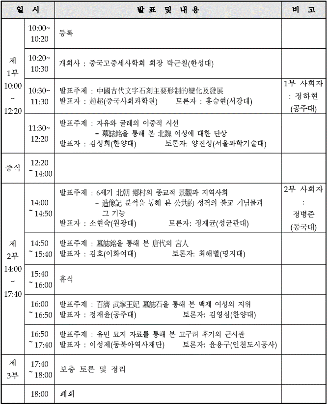 석각자료를 통해 본 동아시아 고중세사 연구의 새로운 가능성-중국고중세사학회 제11회 학술대회 안내