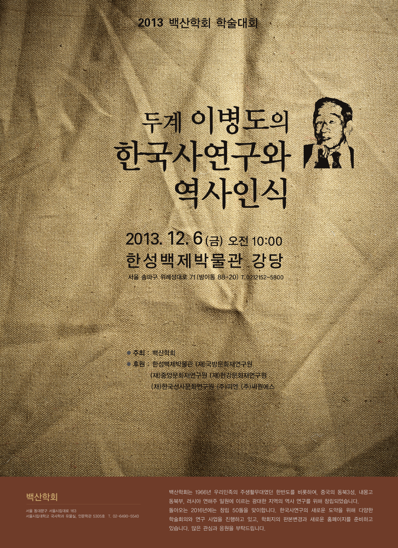 백산학회에서는 '두계 이병도의 한국사연구와 역사인식'이라는 주제로