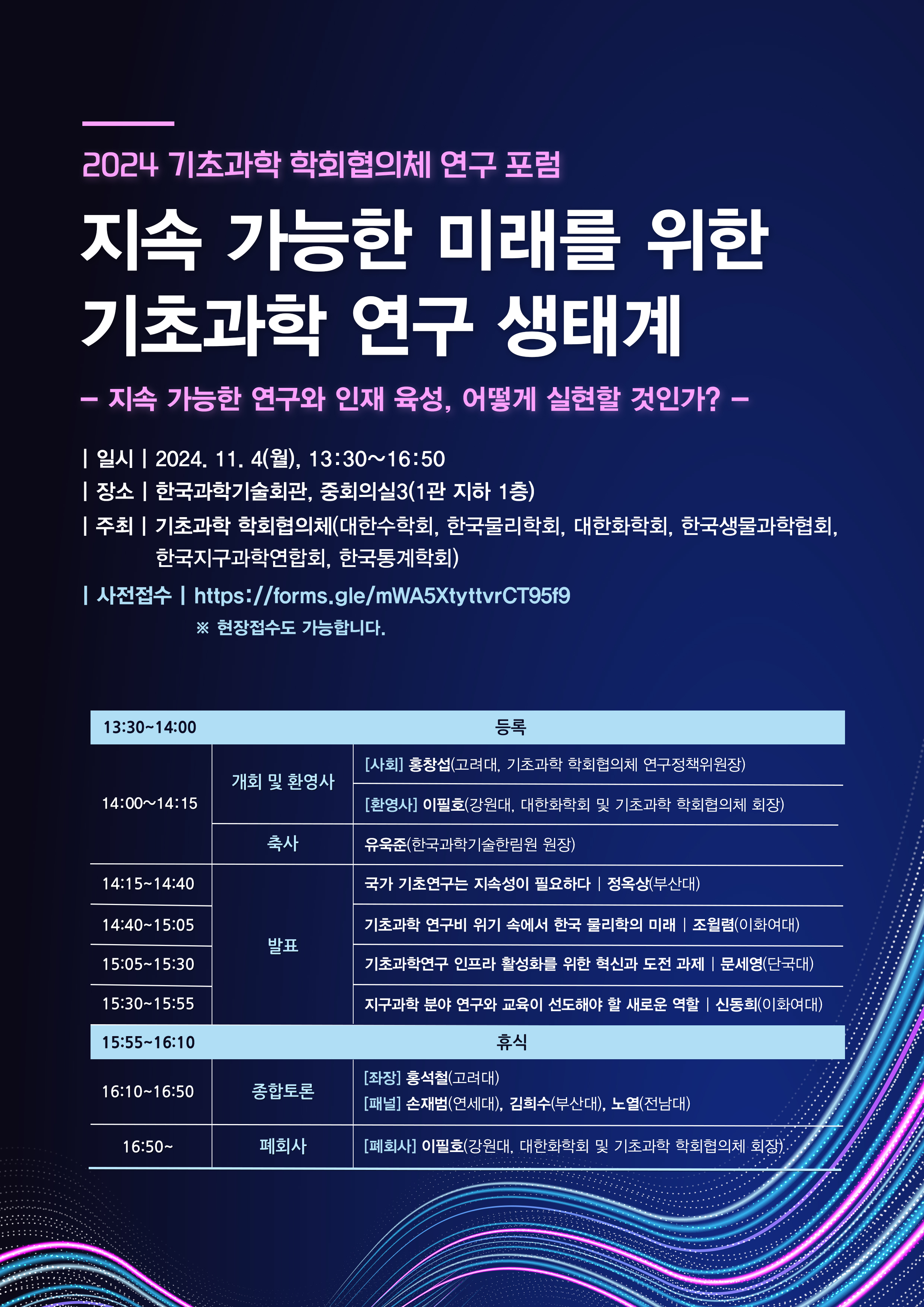 [재안내]2024년 기과협(기초과학 학회협의체) 연구 포럼 안내