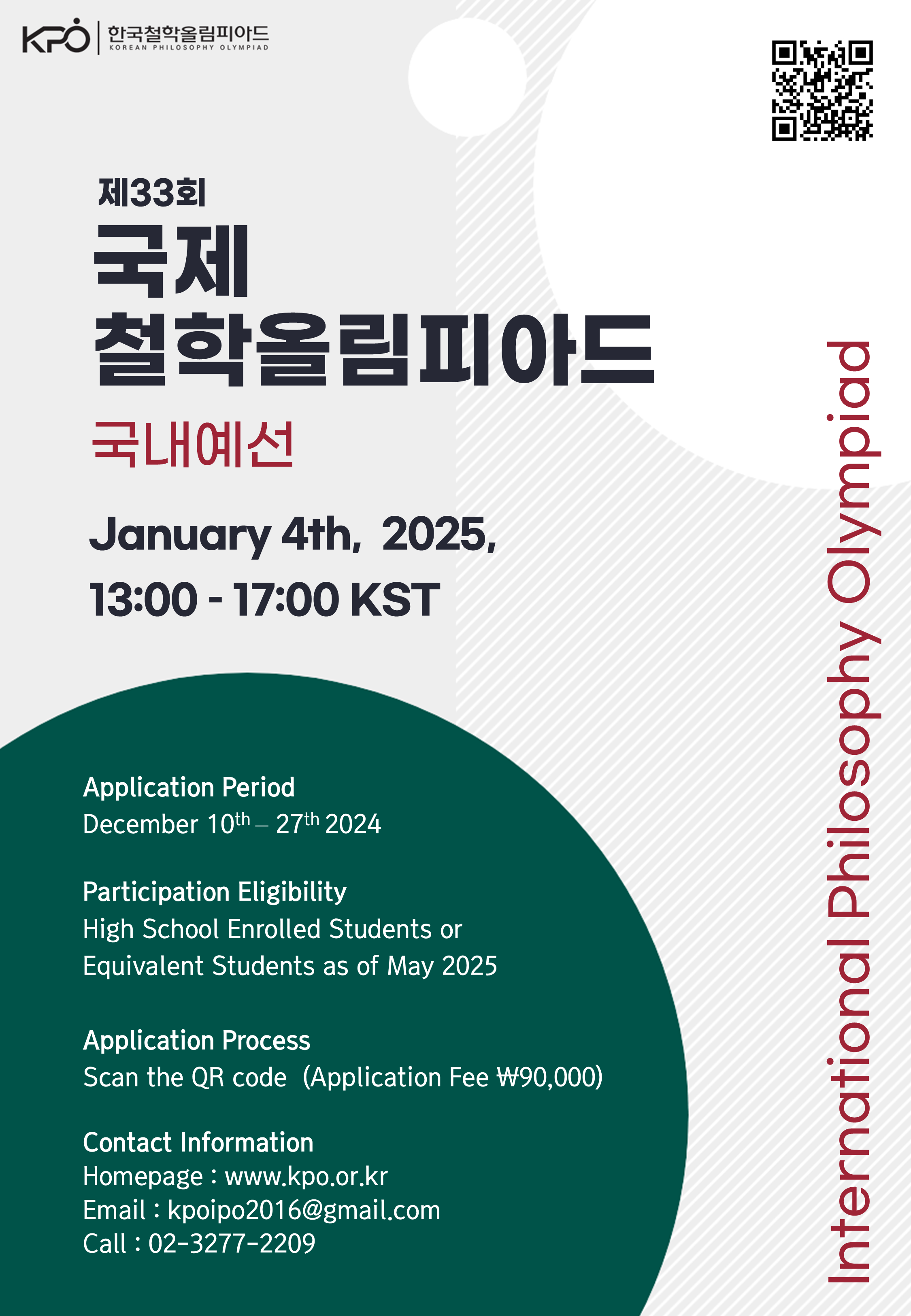 35회 한국철학올림피아드(KPO), 33회 국제철학올림피아드(IPO) 국내 예선 대회 안내