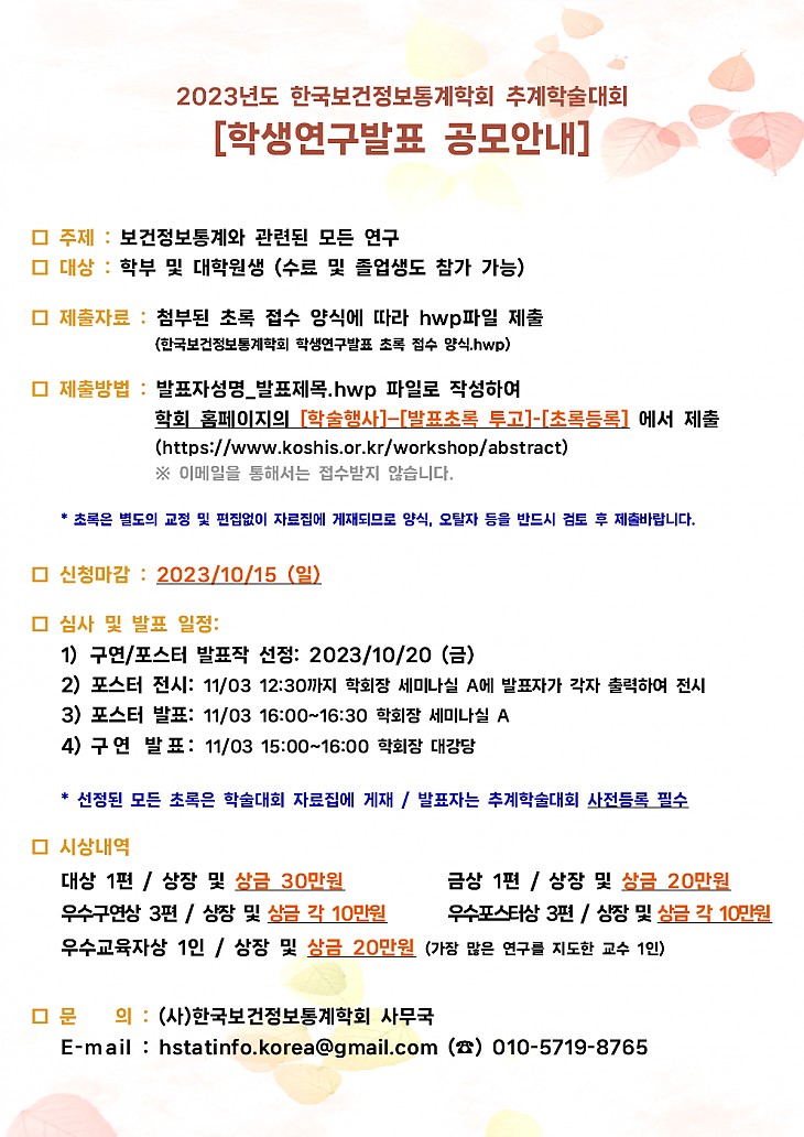 [안내]한국보건정보통계학회 2023 추계학술대회 개최 안내