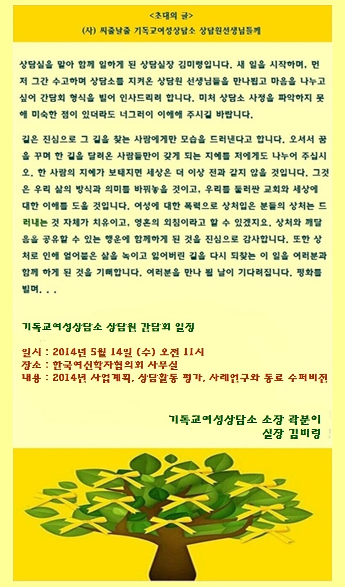 기독교여성상담소 상담원 간담회 안내