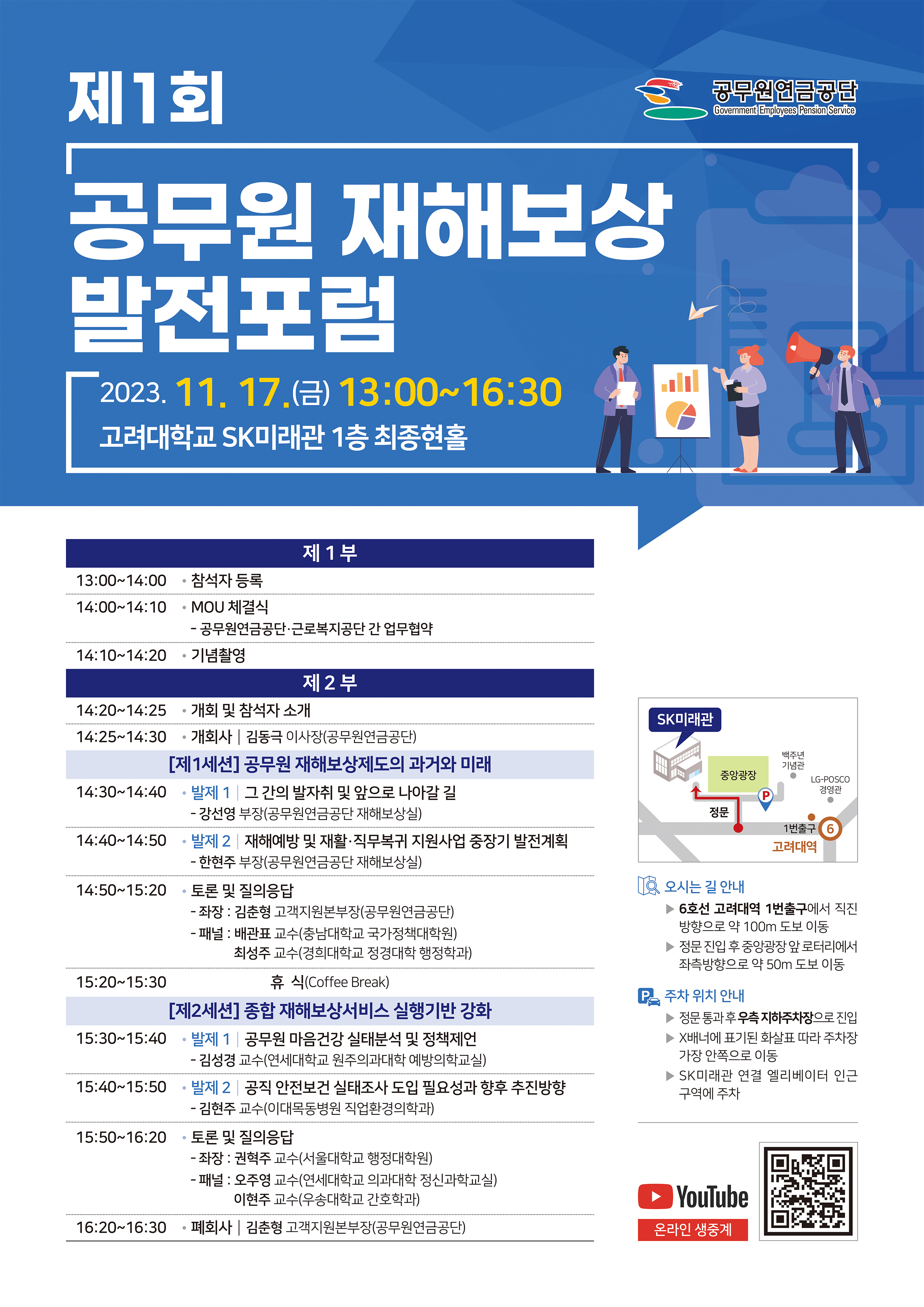 공무원연금공단에서는 다가오는 1117일 금요일(13:00 ~ 16:30)