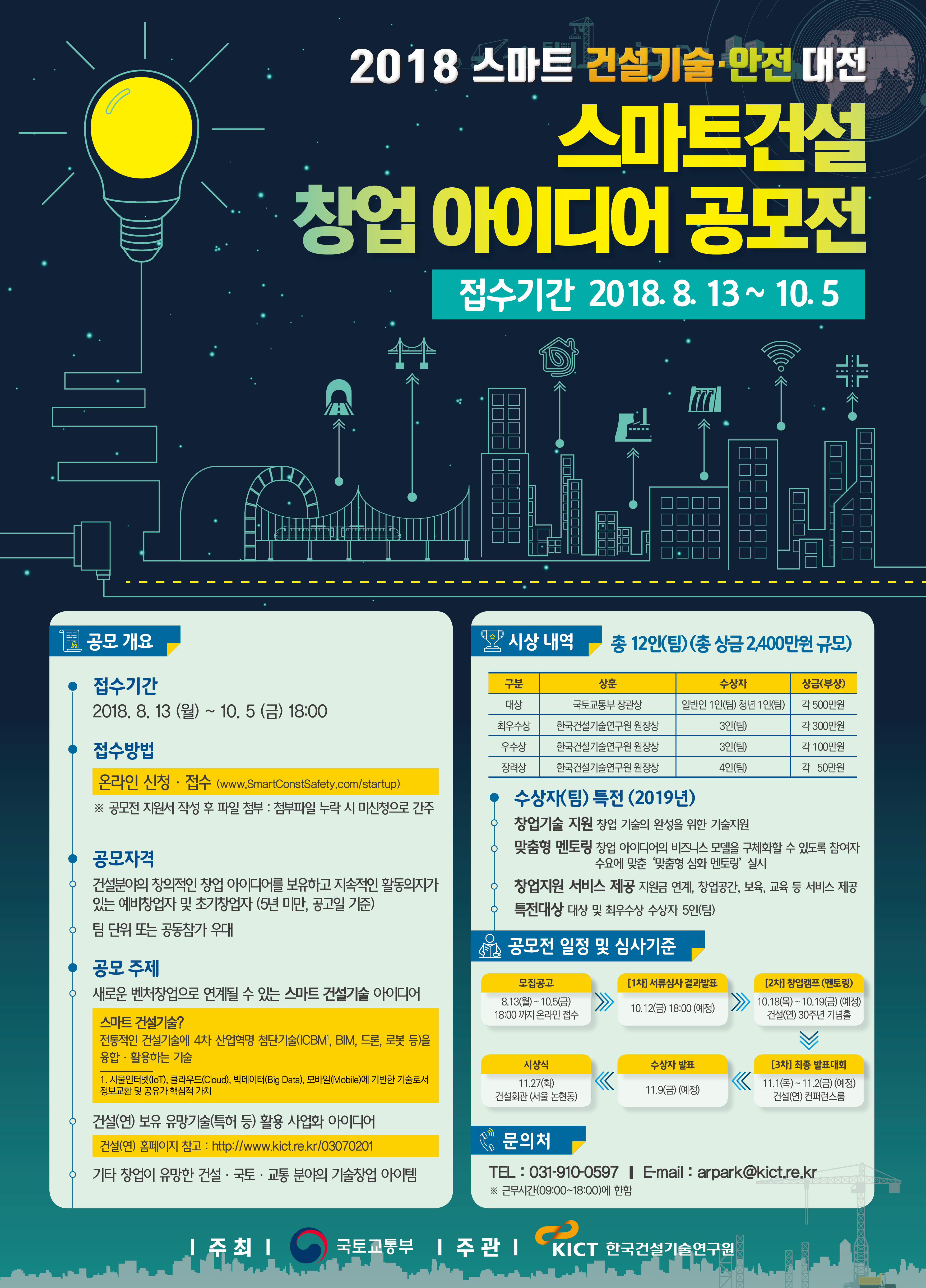 이의 일환으로 '스마트건설 창업 아이디어 공모전'과 '건설/시설안전 경진대회'를 개최합니다.