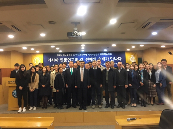 2018년  11월  10(러시아연구소는 본교 서울캠퍼스 대학원 브릭스홀에서 한국노어노문학회와 공동으로 국내학술회의를 개최했다 . “러시아 인문연구의 길 선배와 후배가 만나다 라는 주제로 진행된 이번 학술회의에는 러시아연구소  HK전임인력  4명을 포함해 내국인 학자  6외국인 학자  6명 등 총  16명이 발표에 참여했다 .