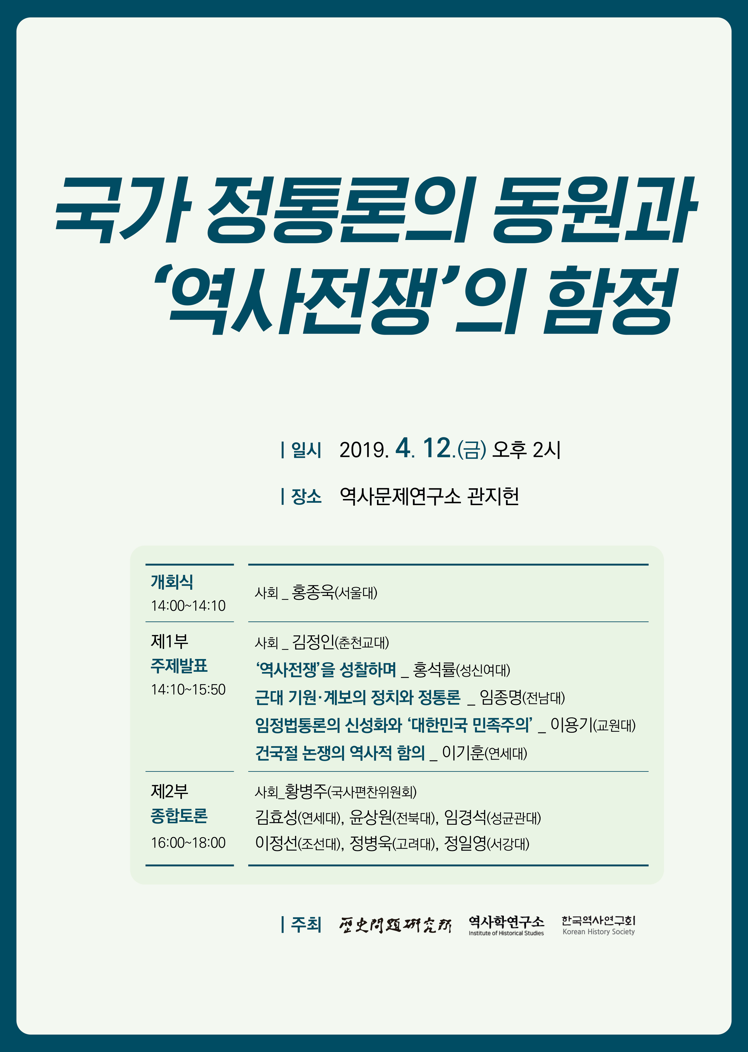 [학술대회] 역사3단체 학술대회 [국가 정통론의 동원과 '역사전쟁'의 함정]