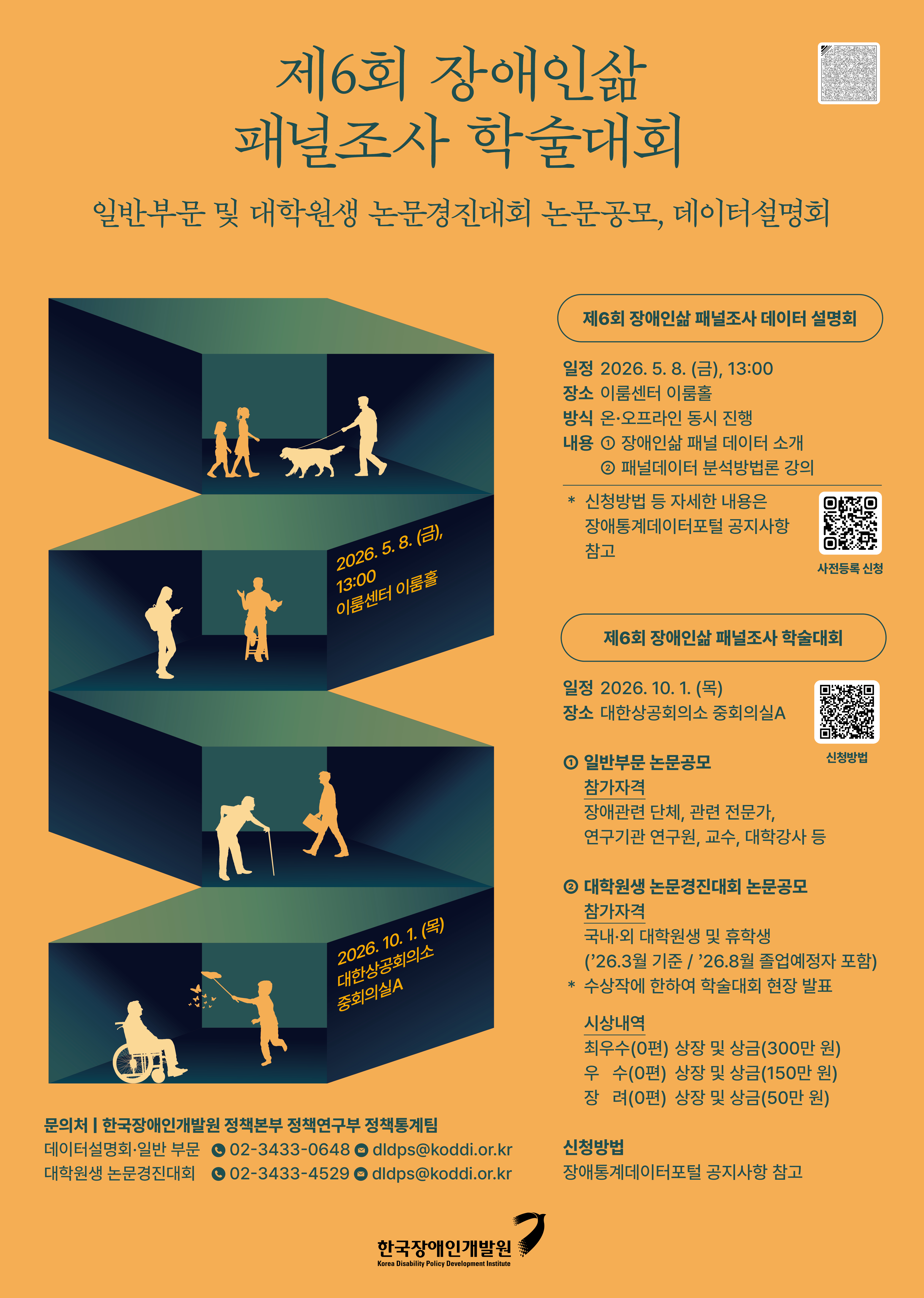 제6회 장애인삶 패널조사 학술대회 논문공모, 대학원생 논문경진대회 및 데이터설명회 안내드립니다.
