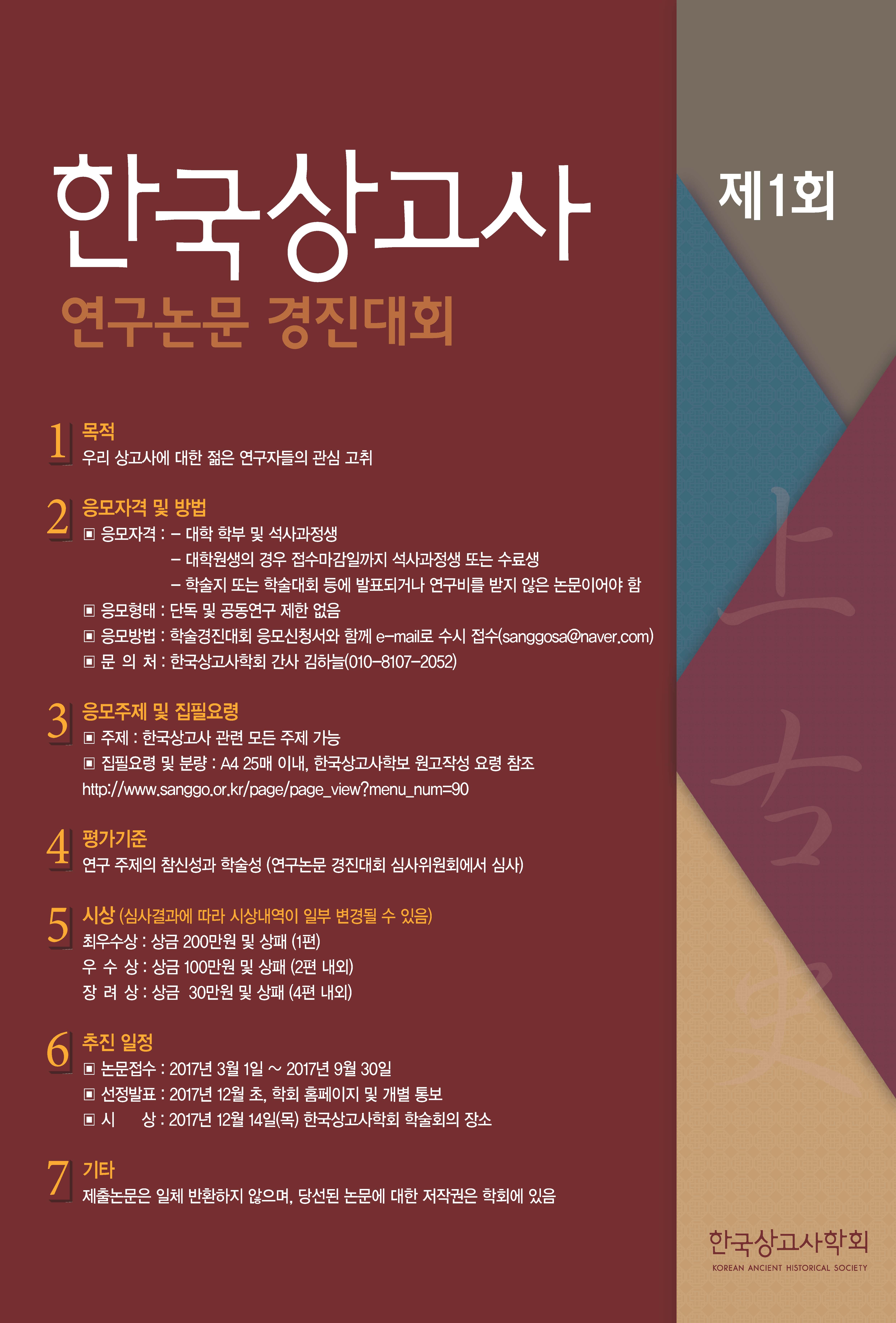 '제1회 한국상고사 연구논문 경진대회'를 실시할 예정입니다.