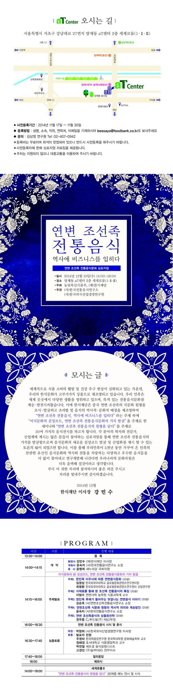 한식재단 주최 < 연변 조선족 전통음식문화 심포지엄 > 안내