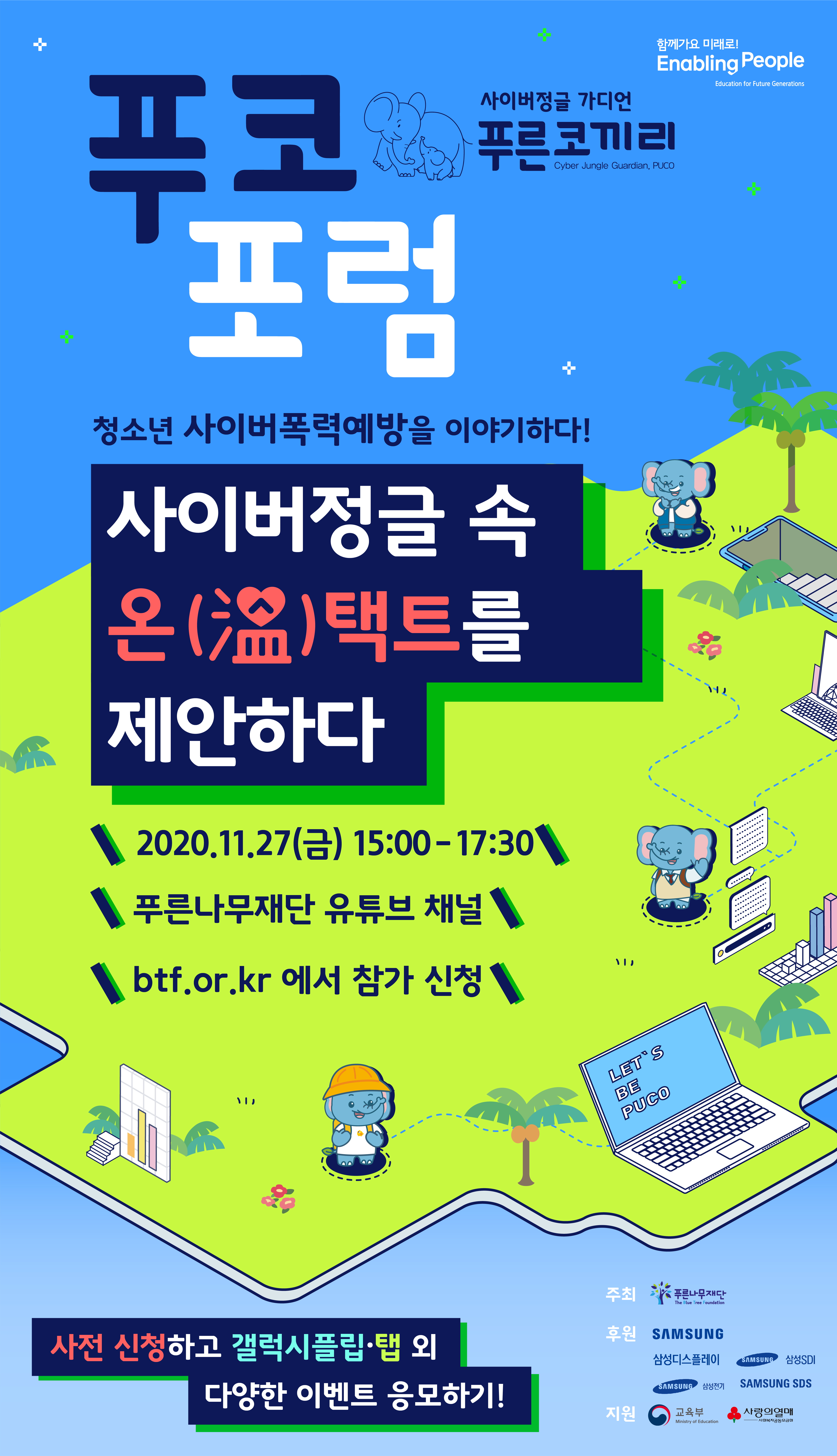 푸른나무재단은 청소년 사이버폭력예방 <푸른코끼리> 포럼을 준비했습니다.