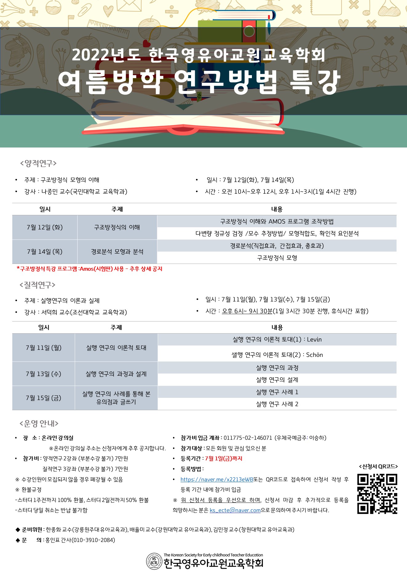 2022년 한국영유아교원교육학회 여름방학 연구방법 특강 안내