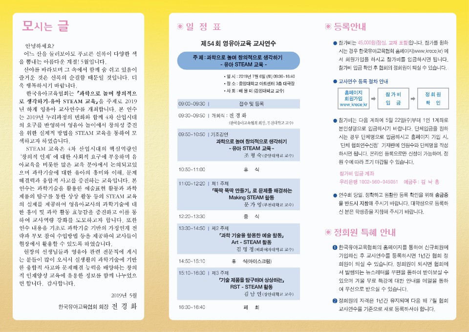 안녕하세요. 한국유아교육협회에서 제54회 영유아교육 교사연수를 진행합니다.