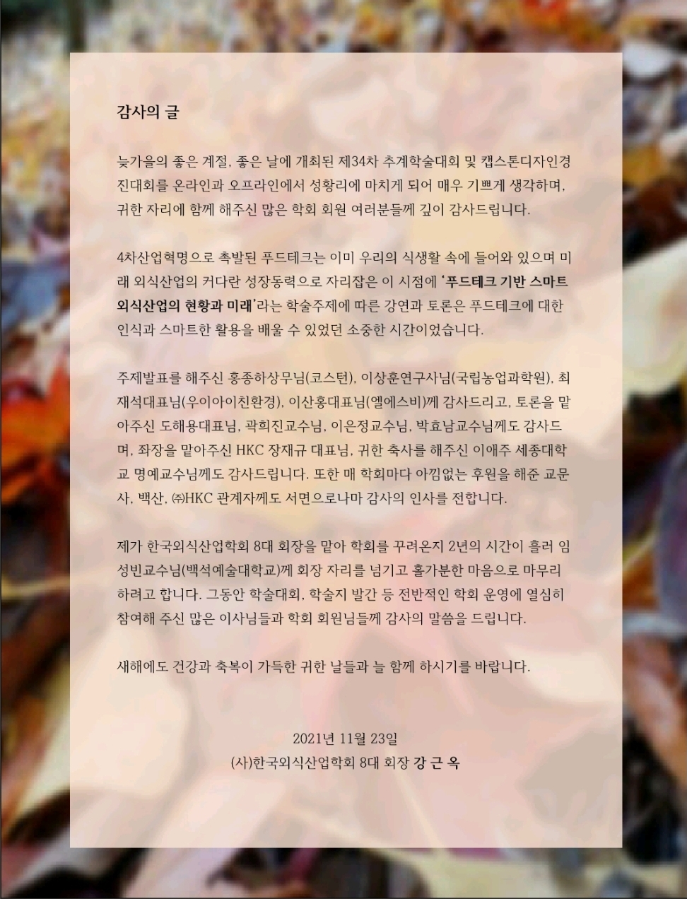 2021년 추계학술대회 및 캡스턴디자인경진대회 감사의 글