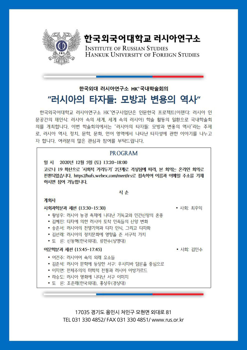 한국외대 러시아연구소 HK+ 국내학술회의 온라인 개최 주소 변경 안내