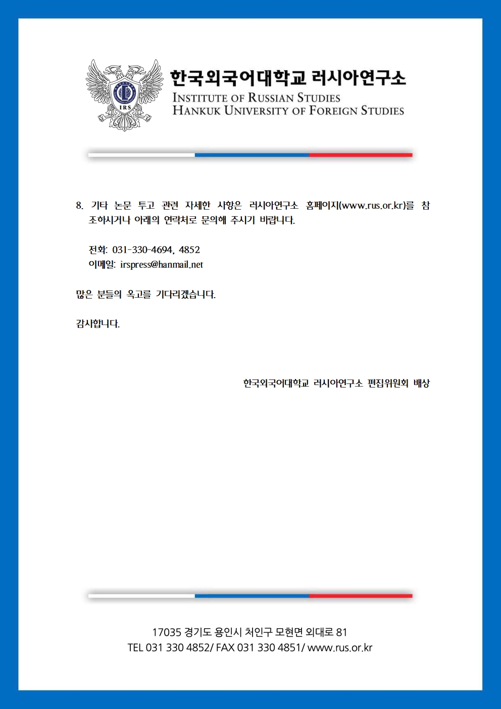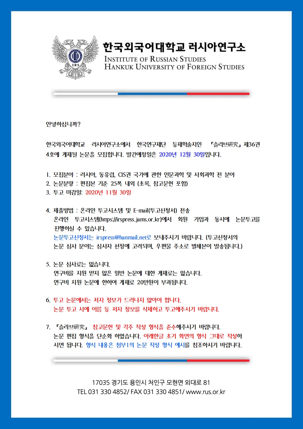 슬라브연구 제36권 4호 논문 투고 안내