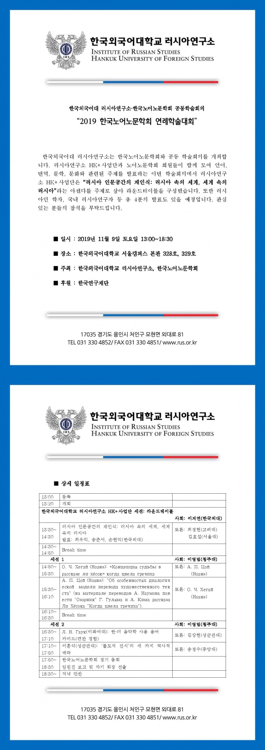 2019 한국외대 러시아연구소 & 한국노어노문학회 공동학술회의