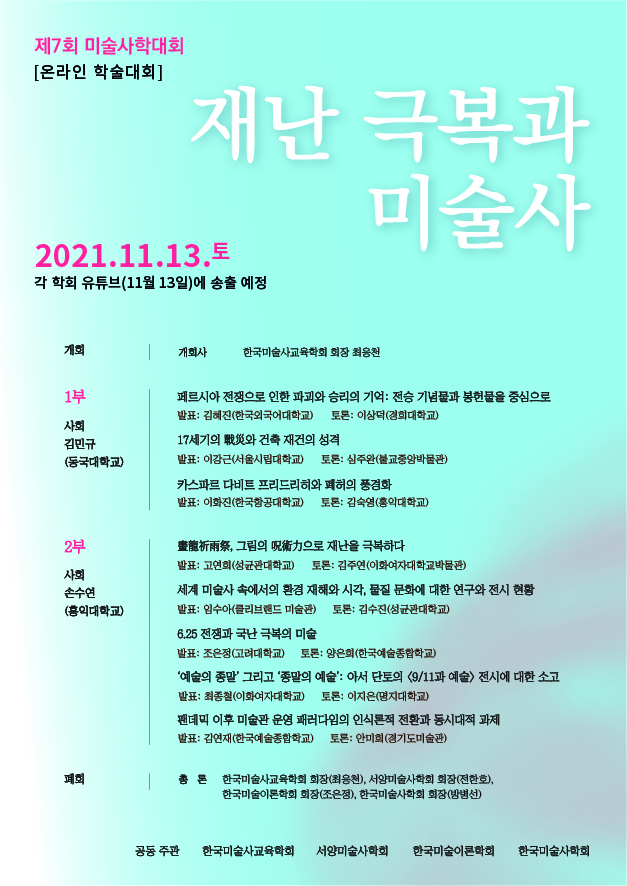 * 주최 : 서양미술사학회 , 한국미술사학회, 한국미술이론학회, 한국미술사교육학회