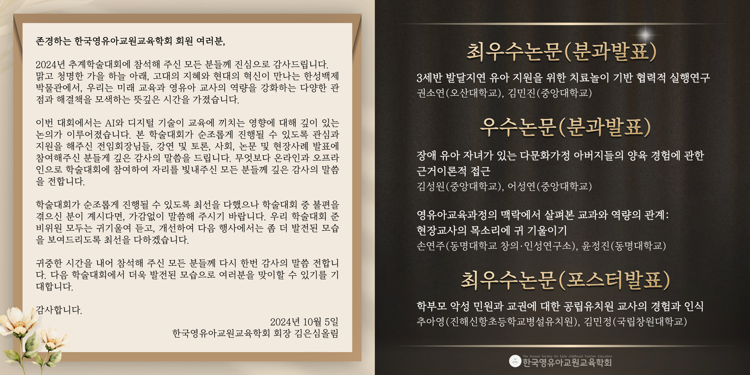 [한국영유아교원교육학회]2024 추계학술대회에 참석해 주신 모든 분들께 감사드립니다