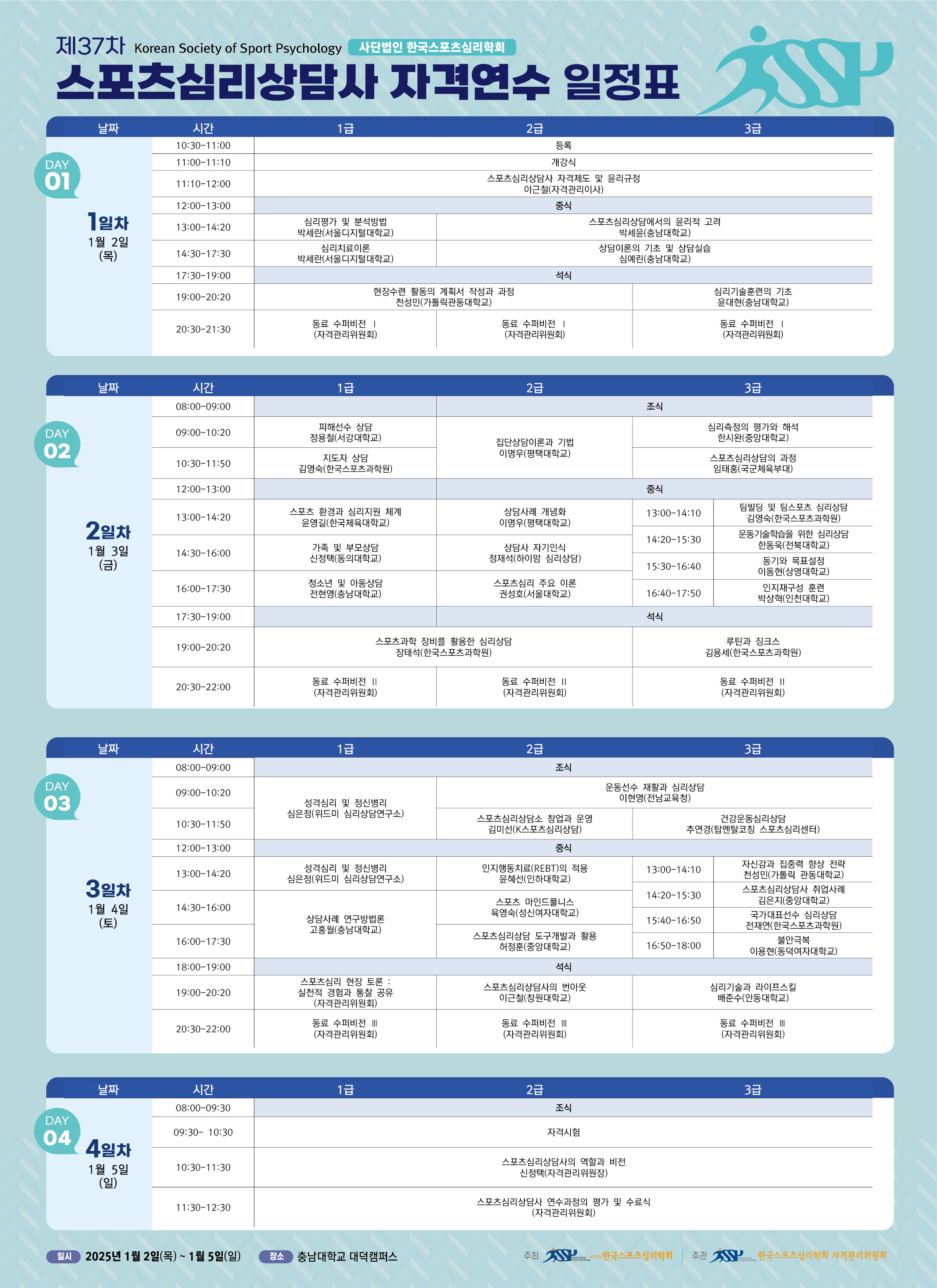 2025년 제 37차 스포츠심리상담사 자격연수생 선발 결과 및 연수 일정표