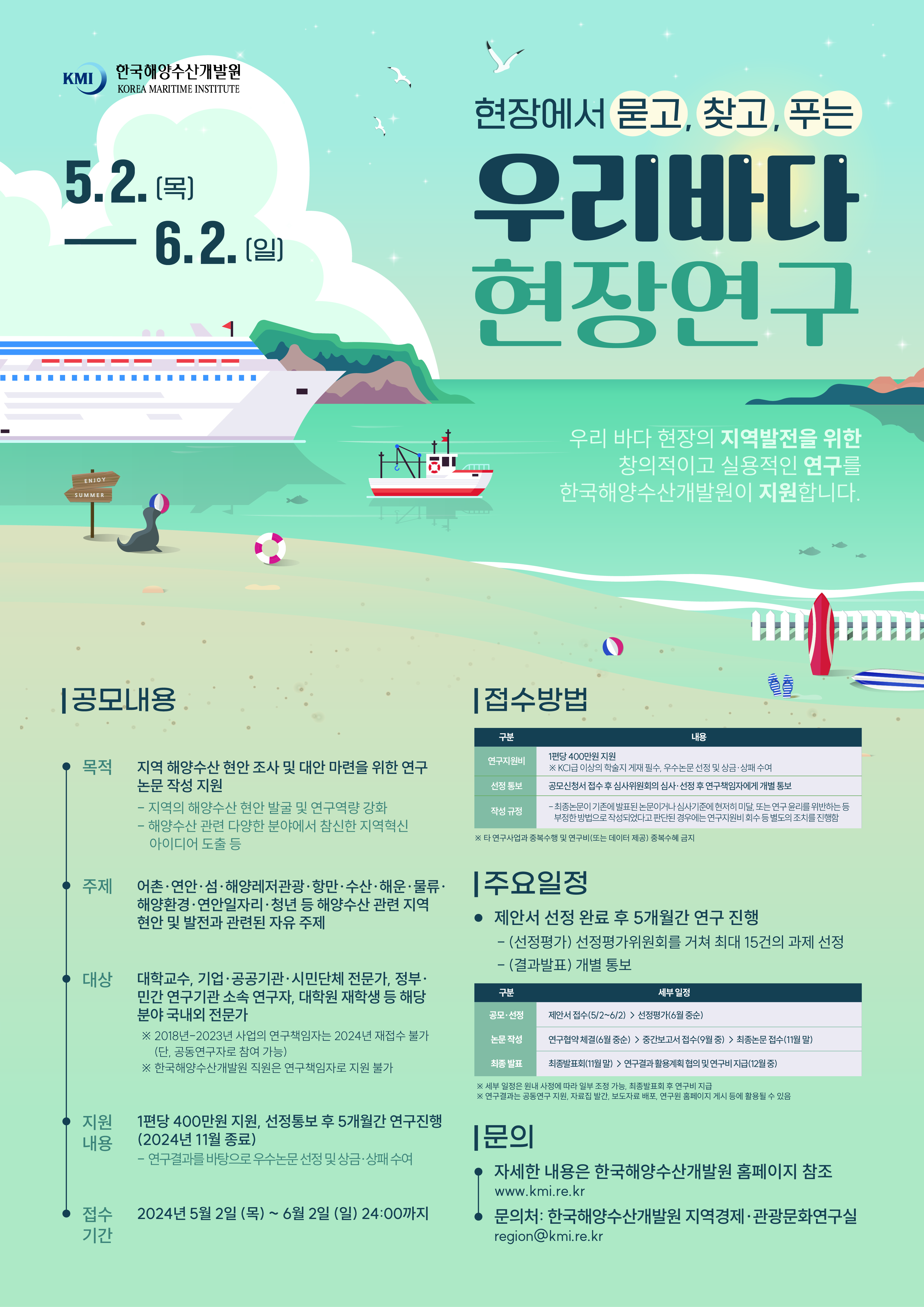 2. [한국해양수산개발원] 2024년 우리바다 현장연구 지원사업 공모 포스터 1부.