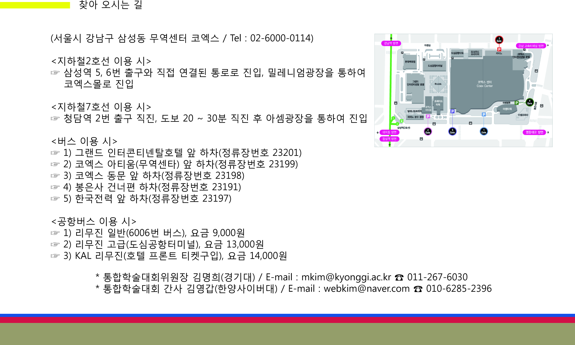 ■ 장소 : COEX Conference Hall(#401) & Seminar Rooms(#307, #308, #317, #318)