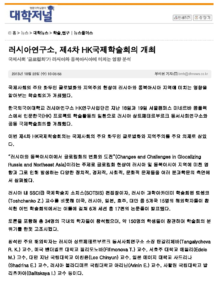 [언론보도] 한국, 일상이 전쟁인 곳- 이리나 코르군 -중앙선데이 2013.10.13