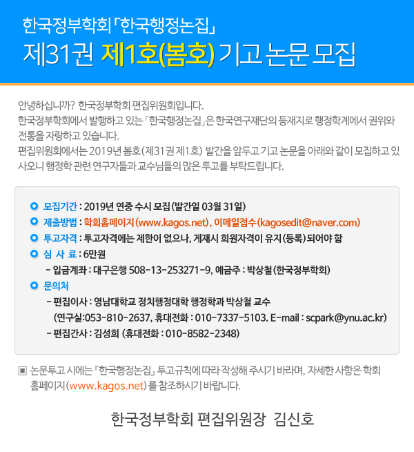 (사)한국정부학회 2018년도 동계학술대회 안내