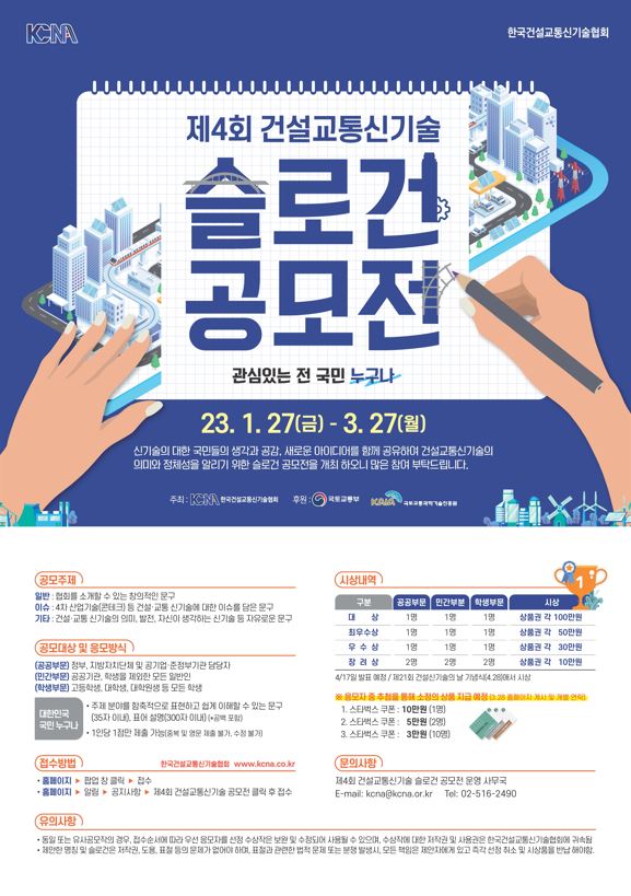 붙임 : 1. 제4회 건설·교통신기술 슬로건 공모전 참가 안내 1부.