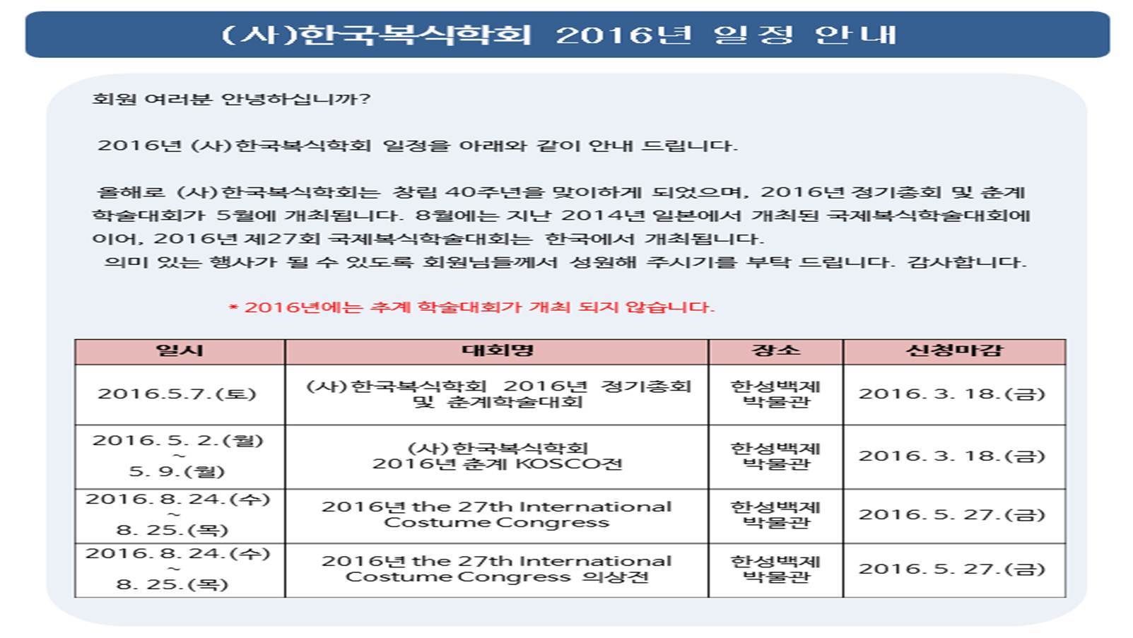 2016년 (사)한국복식학회 동계 세미나 개최 안내