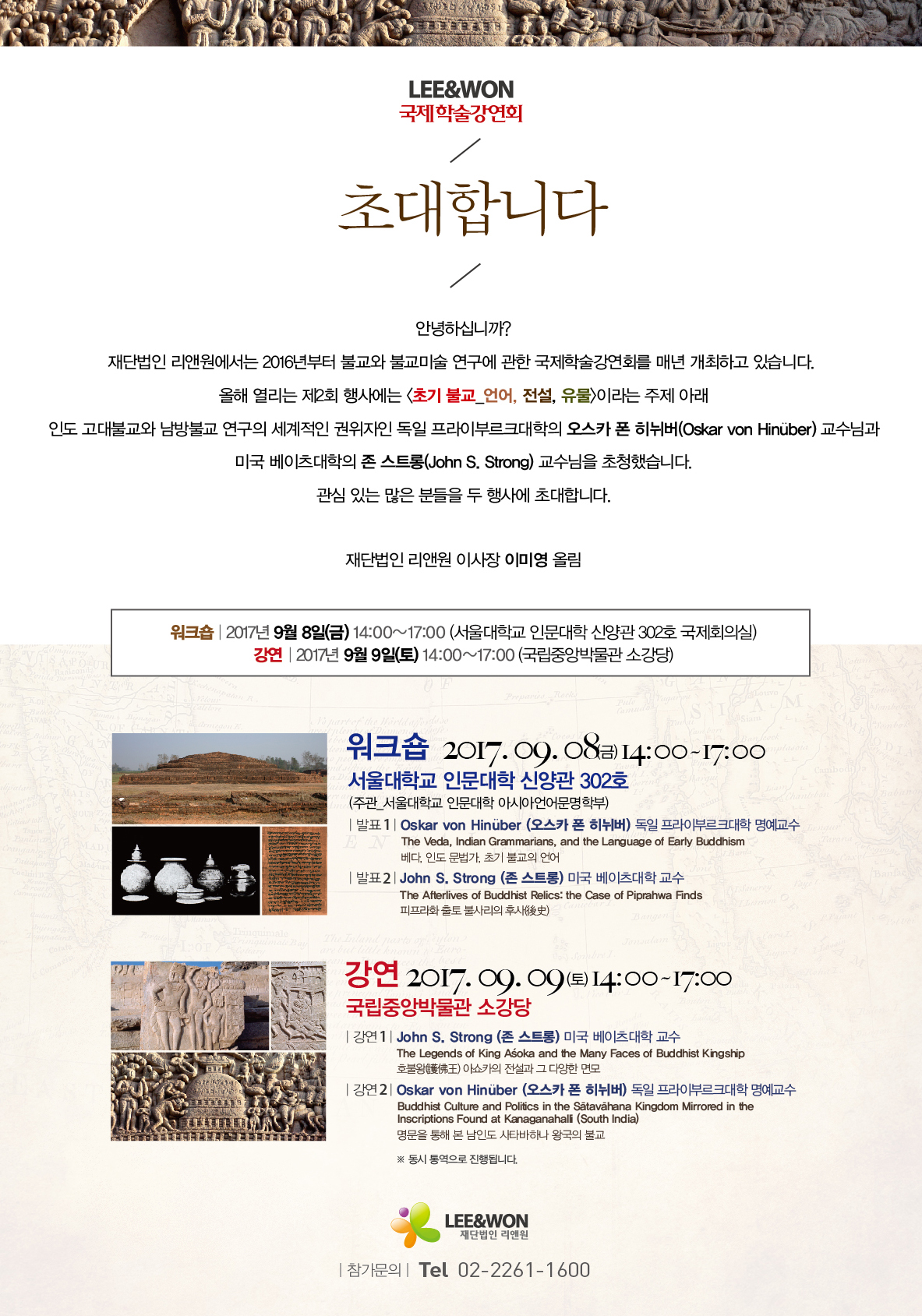 초청장도 첨부하였사오니 관련 문의는 리앤원재단(02-2261-1600) 또는 아시아언어문명학부 교수 구하원(hawonku@snu.ac.kr)에게 부탁드립니다. 감사합니다.