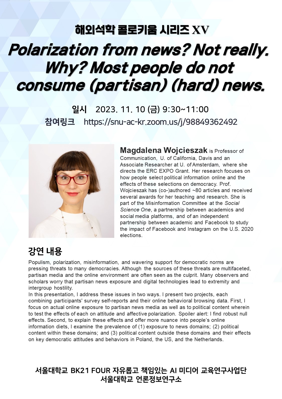 □ 강연자 : Magdalena Wojcieszak (University of California, Davis)