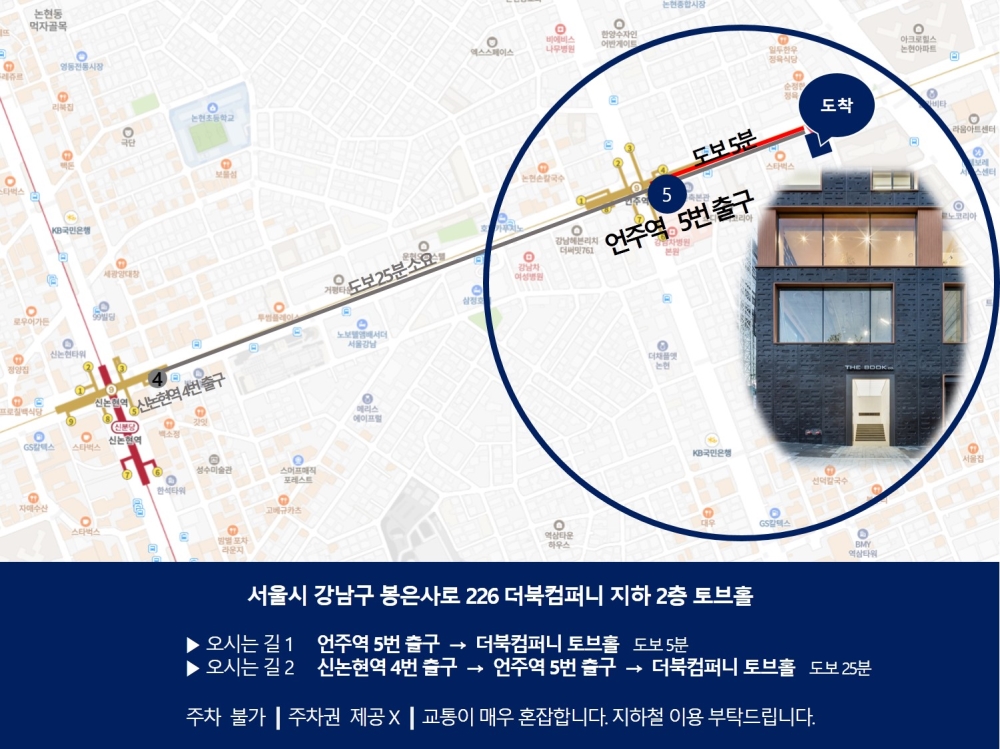 - 장소: 더북컴퍼니 토브홀 (서울시 강남구 봉은사로 226 지하2층)