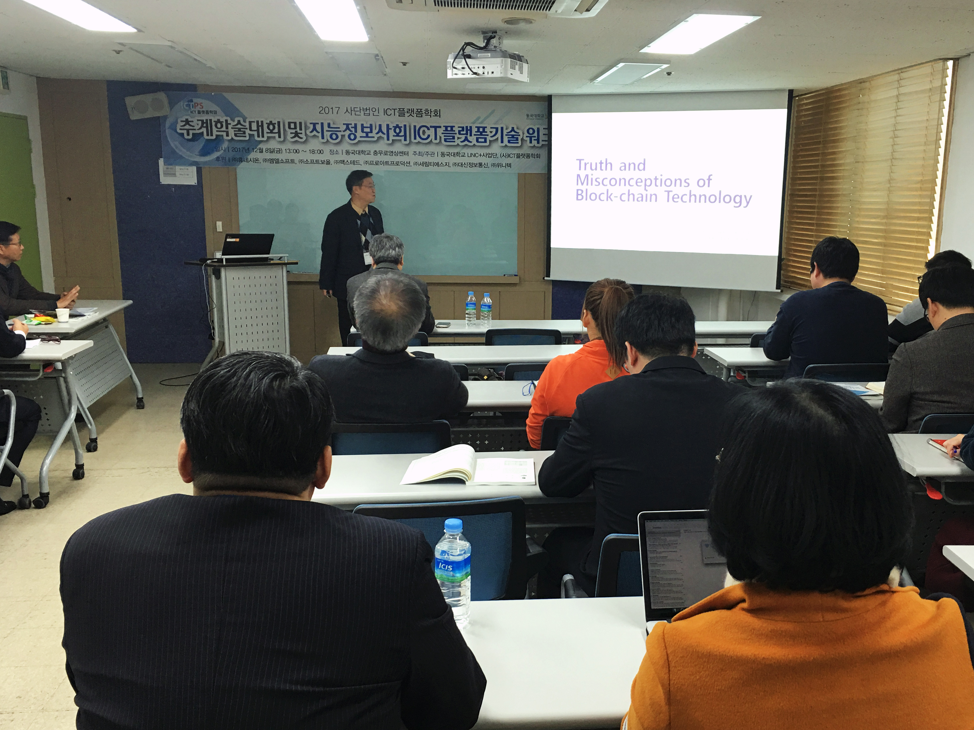 이번 학술대회에서 단국대학교 박용범 교수는 ‘블록체인의 이해와 활용방안’ 주제로 발표했으며, 이어서 대학원생 및 교수들은 다양한 ICT플랫폼기술 연구결과를 발표했다. 또한 대학생들의 연구논문경연대회가 병행하여 개최되었으며 우수논문에 대한 시상도 진행했다.