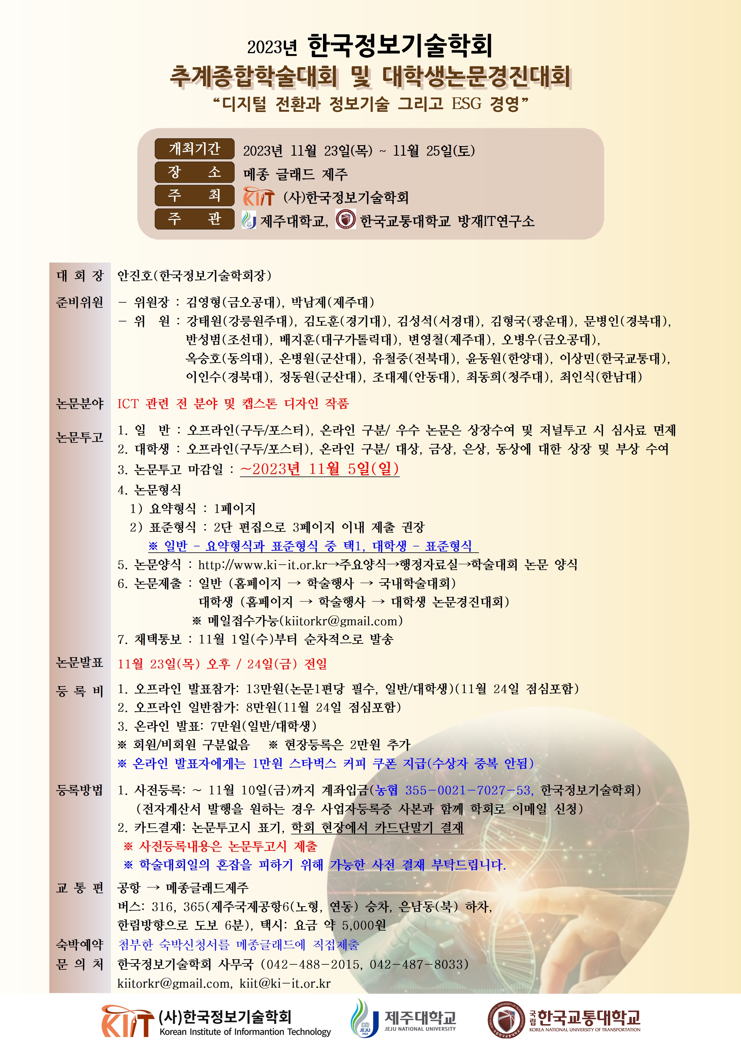 [논문투고 마감일 연장] 2023년 한국정보기술학회 추계종합학술대회 및 대학생논문경진대회_11월 5일(일)까지